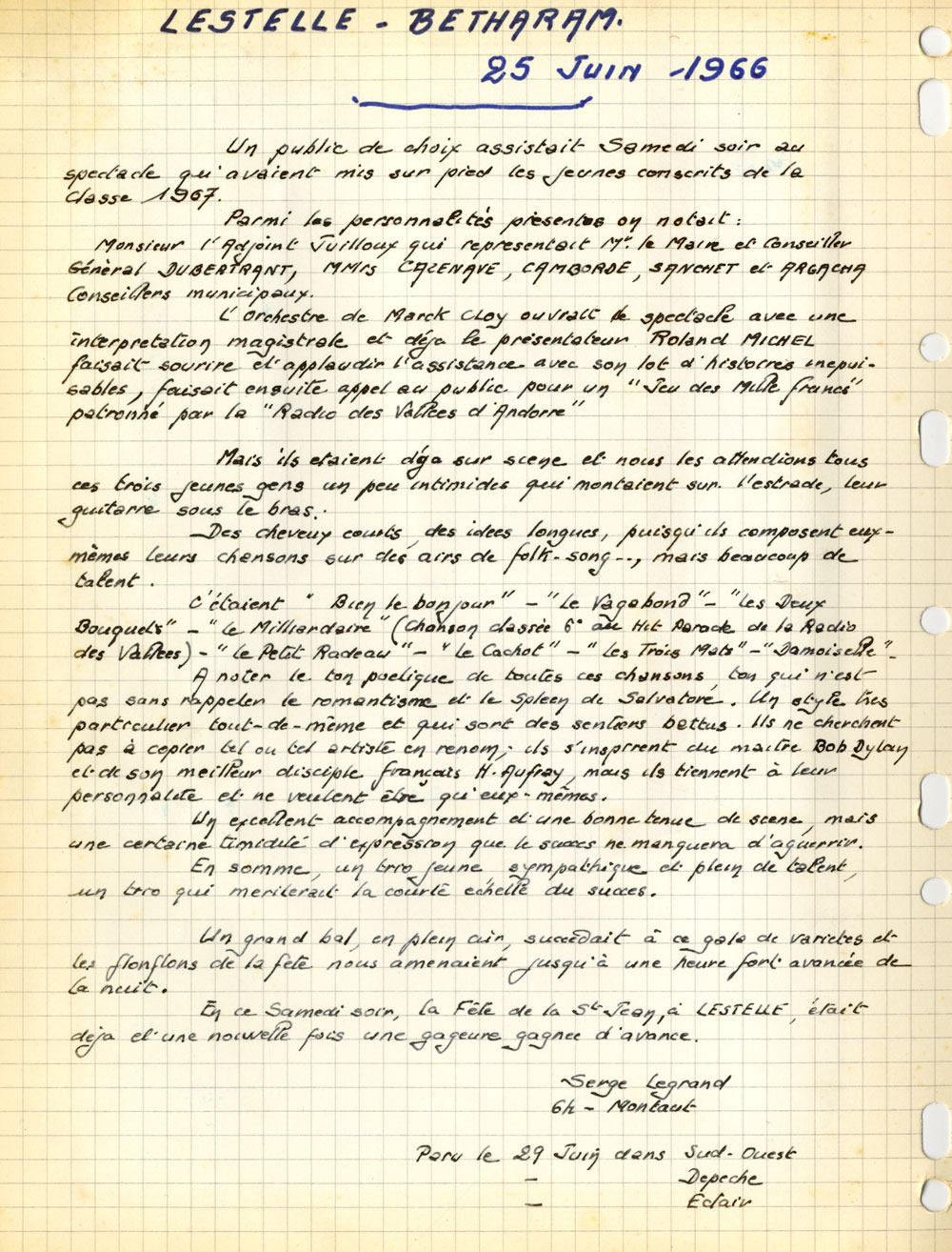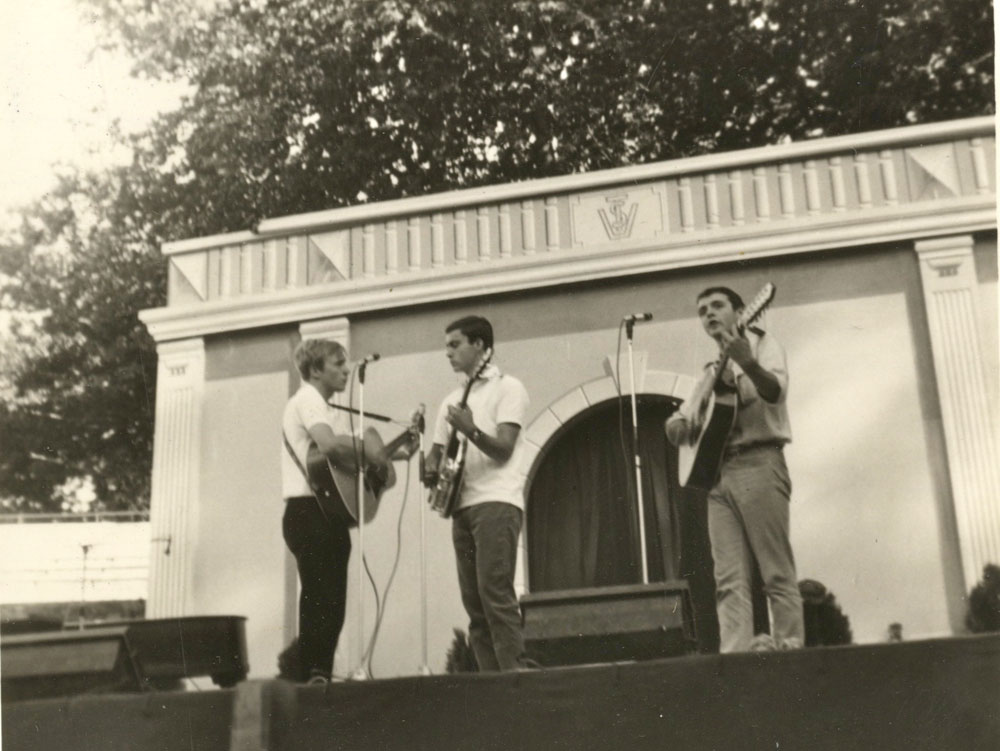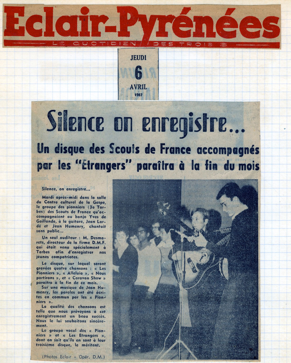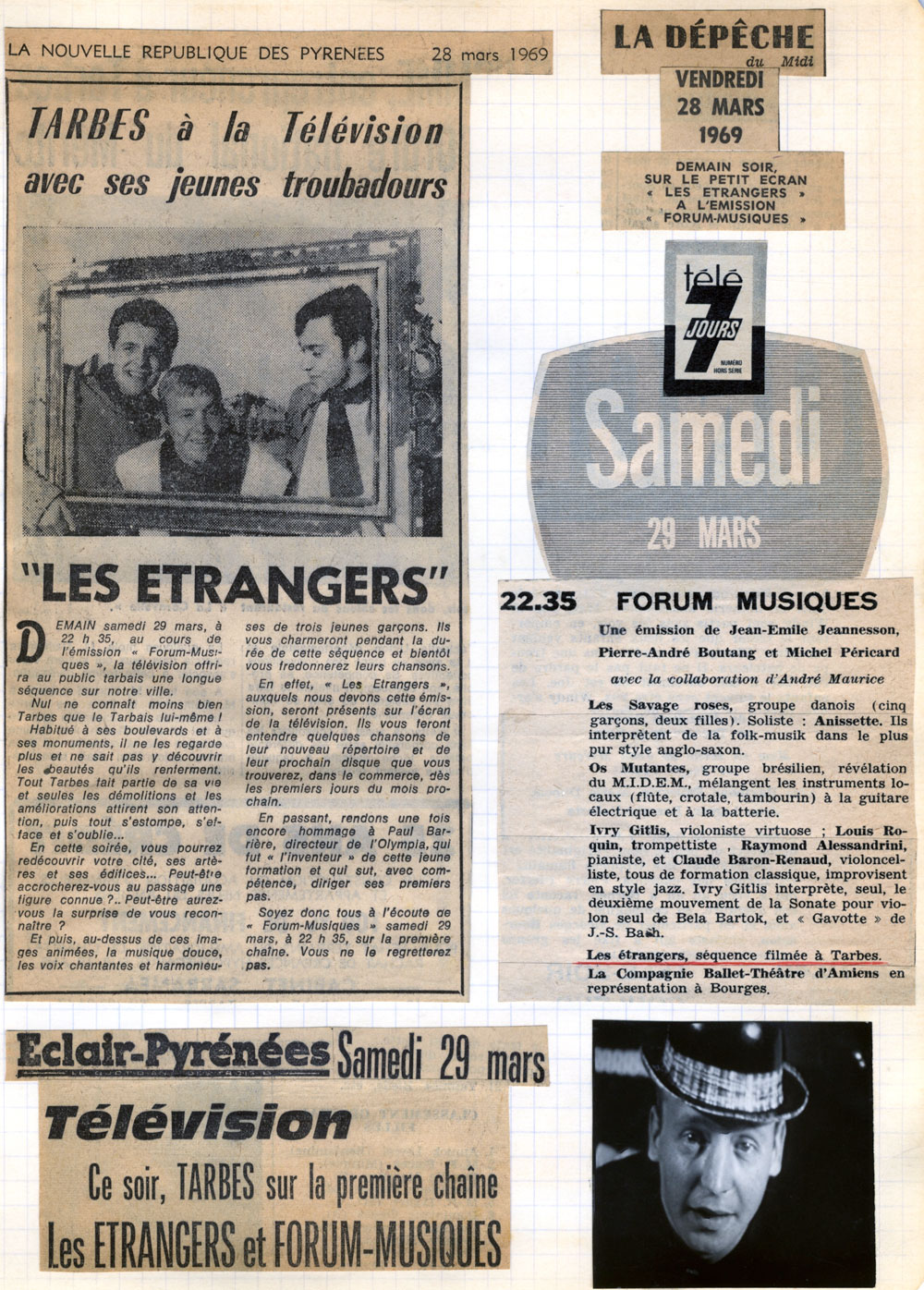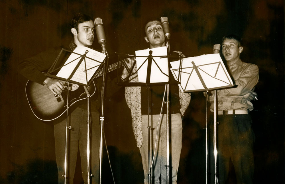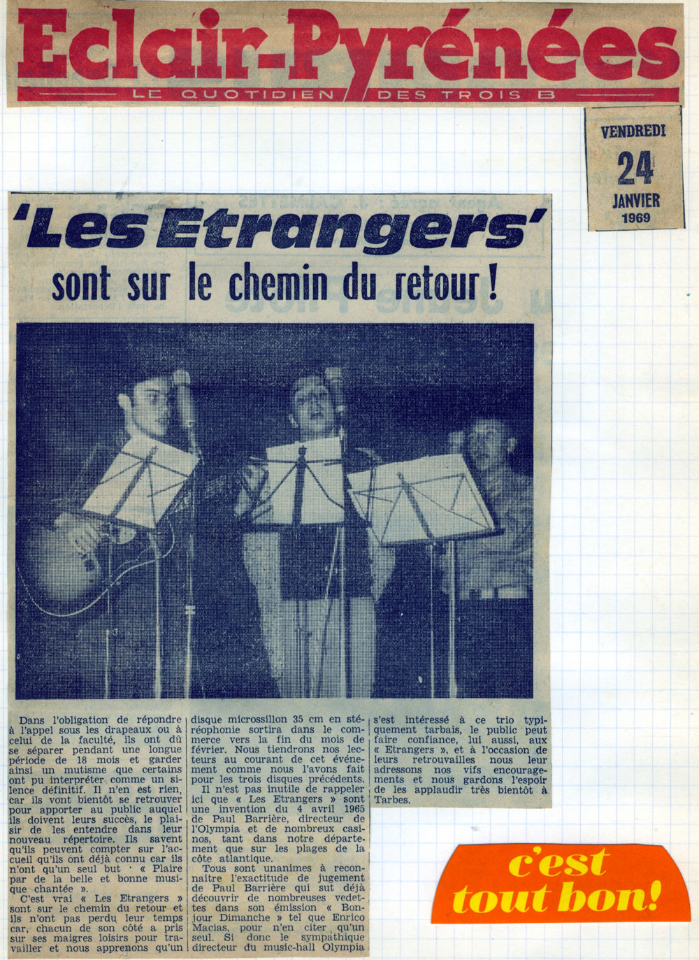 Yves de Gaillande, Nils Lardé et Jean Humenry, alias Les Etrangers, se rencontrent au lycée, à Tarbes. La guitare, le banjo, l’harmonica leur procurent le plaisir de jouer ensemble, comme tous les jeunes musiciens de leur âge. Ils sont influencés par les mélanges musicaux de cette époque entre deux eaux, entre insouciance, avidité de vivre et prise de conscience des maux de ce monde. Ils écoutent Woody Guthrie, Bob Dylan, Peter Paul and Mary, Joan Baez. Jacques Brel, Guy Béart et Hugues Aufray (qui, cette même année, chante Santiano) marquent sans doute leur désir de chanter en Français. Ils reprendront d’ailleurs N’y pense plus tout est bien, alchimie entre la musique de Dylan et l’adaptation de Pierre Delanoë et Aufray.