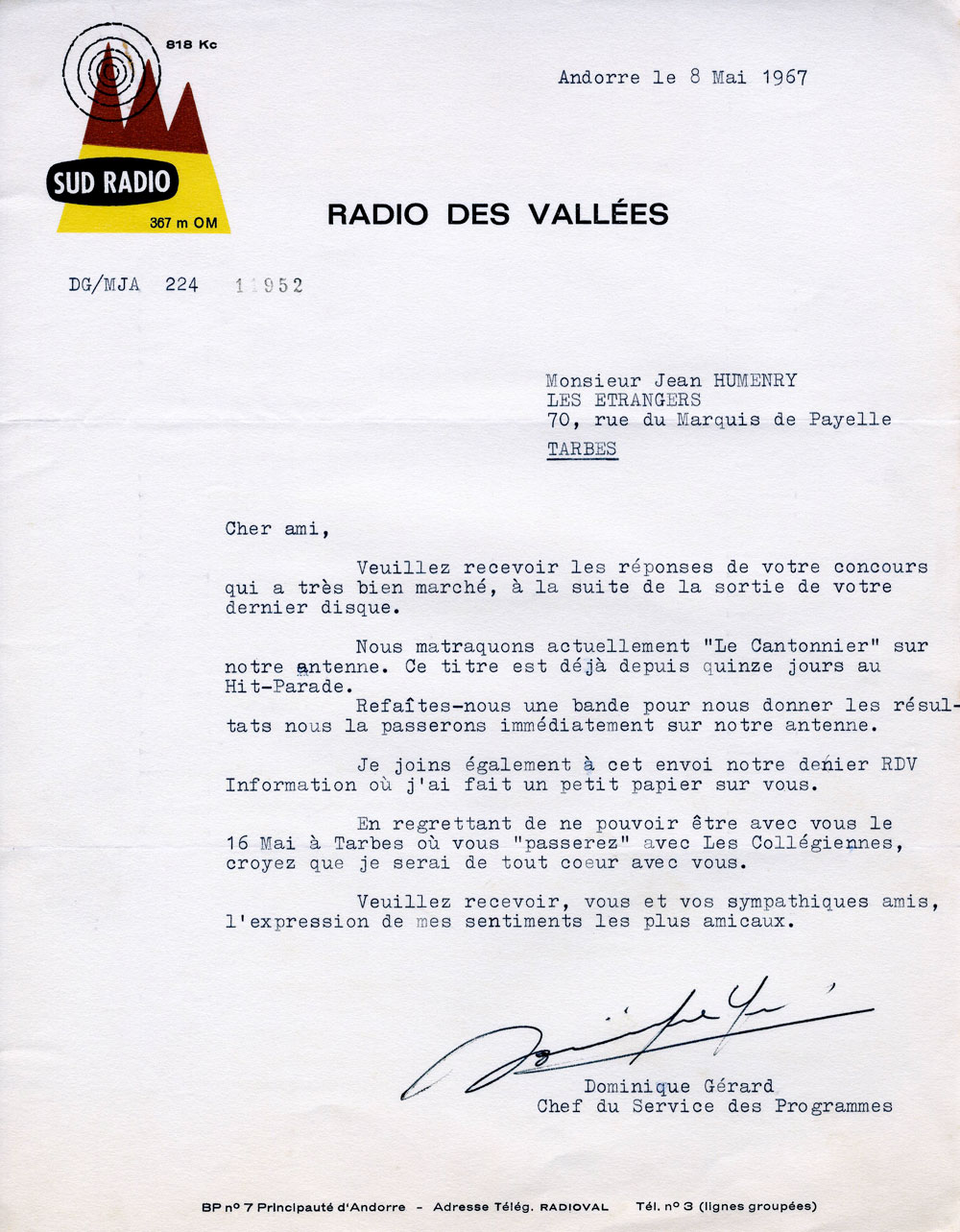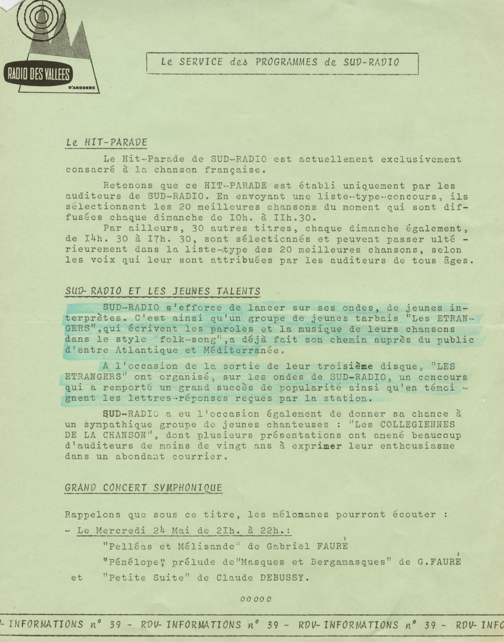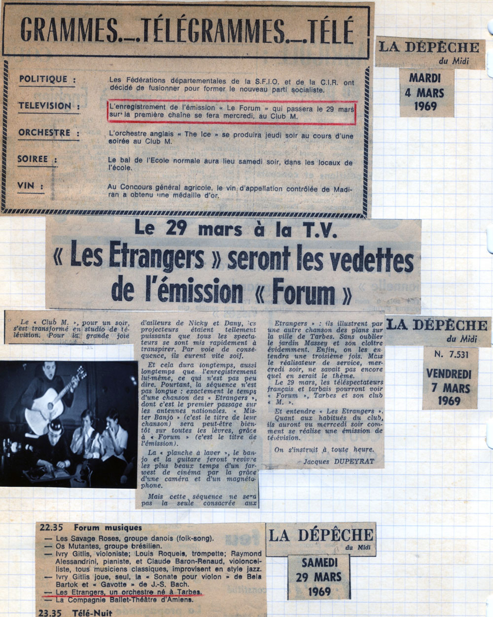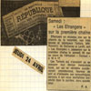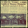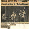 Les chansons des Etrangers sont vraiment les témoins de ce temps. La générosité, l’amitié, l’ouverture aux autres, l’amour, les droits de l’homme en sont les principaux thèmes. La musicalité des trois 45 tours et du 33 tours enregistrés par le groupe montre leur niveau d’exigence, de travail et pourtant le plaisir de chanter, de jouer ensemble nous est directement transmis. Repérés et soutenus par Sud Radio et Claude Barrière, le créateur des productions Olympia du Sud-Ouest, Les Etrangers seront même engagés pour faire les premières parties de grands artistes de la chanson : Jacques Brel (excusez du peu !), Marcel Amont, les Compagnons de la chanson.