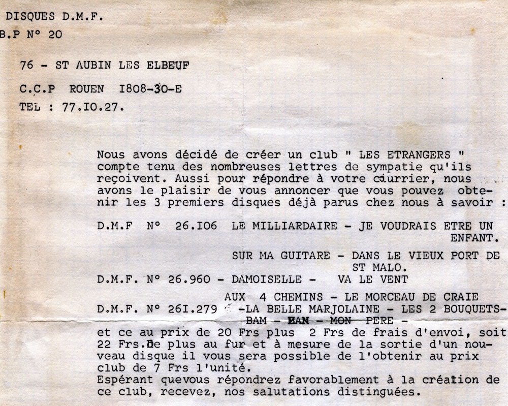 Quand j’écoute les chansons des Etrangers, je me sens ému et enthousiasmé par la lucidité des textes de ces jeunes gens âgés de 17 ans, la vivacité des mélodies, la précision des voix et des instruments. Aujourd’hui, on dirait d’eux qu’ils étaient « d’une grande maturité », ce qui ne veut absolument rien dire d’ailleurs.